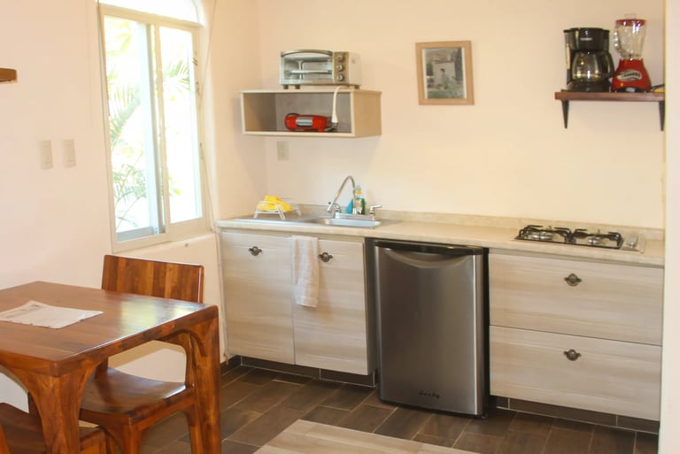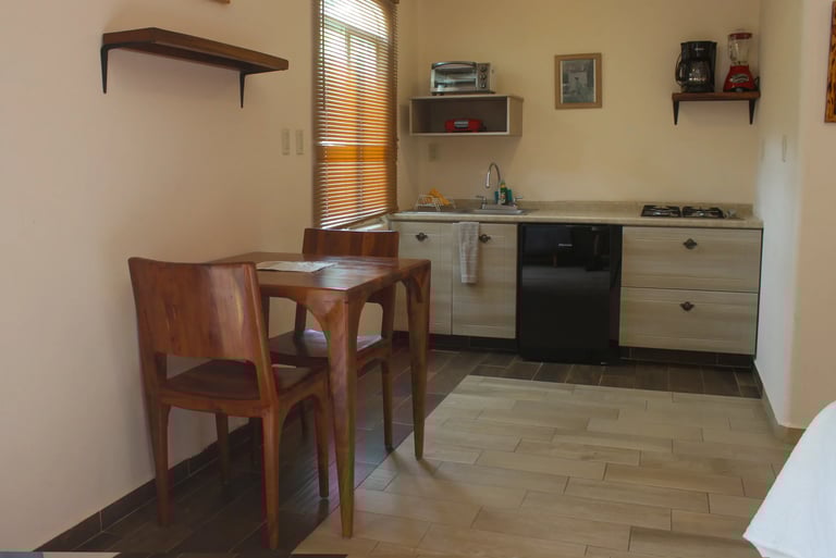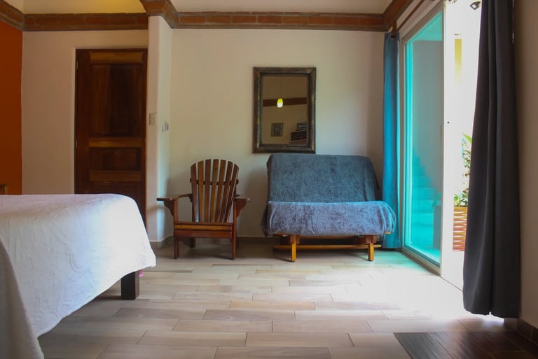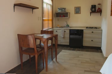 Este estudio cuenta con 31 m2 de área. Situado en el 1er piso. Su cama Queen es cómoda para noches de descanso. Cuenta con muebles de madera de mezquite en un estilo mexicano rústico creado especialmente para ti.