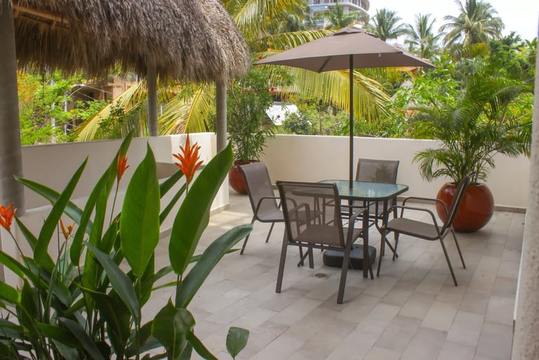 El Estudio Caracol tiene fachada al amanecer que podrás gozar desde su espaciosa terraza con vista a las montañas y parte del pueblo. Es un hermoso estudio de tamaño medio para disfrutar de tus vacaciones en Sayulita.