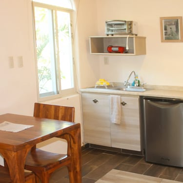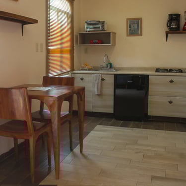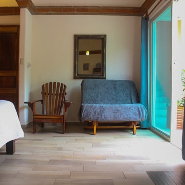 Este estudio cuenta con 31 m2 de área. Situado en el 1er piso. Su cama Queen es cómoda para noches de descanso. Cuenta con muebles de madera de mezquite en un estilo mexicano rústico creado especialmente para ti.