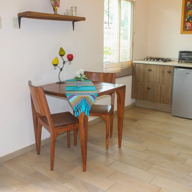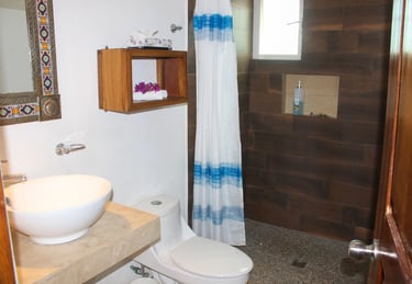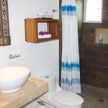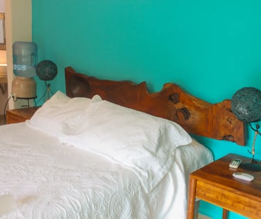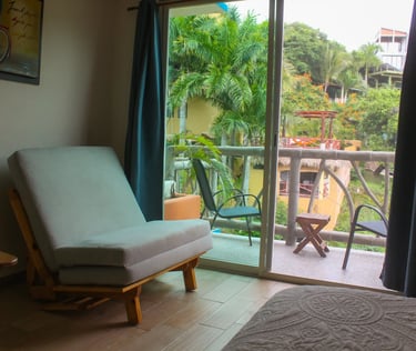 Ubicado en el tercer piso —a solo unos pasos de la terraza con alberca— este refugio de 31 m² ofrece una vista privilegiada hacia las montañas y el pueblo desde su balcón privado orientado al amanecer. Equipado con una cómoda cama queen y muebles de madera de mezquite en estilo rústico mexicano, Cuiza es un espacio cálido, tranquilo y perfectamente diseñado para relajarte y disfrutar Sayulita desde las alturas.
