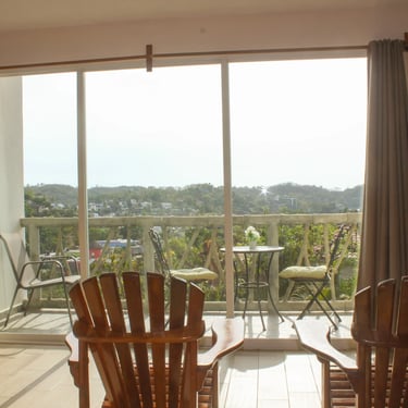 Situado en el tercer piso, el Refugio Guacamaya ofrece una de las mejores vistas panorámicas de Villa Los Corales: paisajes naturales se despliegan frente a ti desde su balcón privado de 7.5 m². Con 45 m² de superficie interior y una espaciosa cama king, este refugio es perfecto para quienes buscan comodidad, amplitud y un ambiente tranquilo con carácter mexicano.