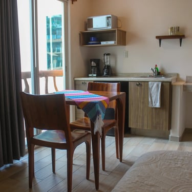 Con 25 m² de superficie, este refugio ubicado en el segundo piso es ideal para una persona o pareja que busca comodidad y descanso. Cuenta con una cama queen, ambiente acogedor y todas las amenidades que distinguen a Villa Los Corales. Perfecto para una estancia práctica y relajada en Sayulita.