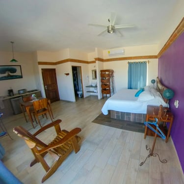 Con un área de 41mts2 y una cama tamaño king, éste estudio asegura noches de descanso y el confort para tiempos de relajación. Cuenta con cocina moderna y práctica para las vacaciones